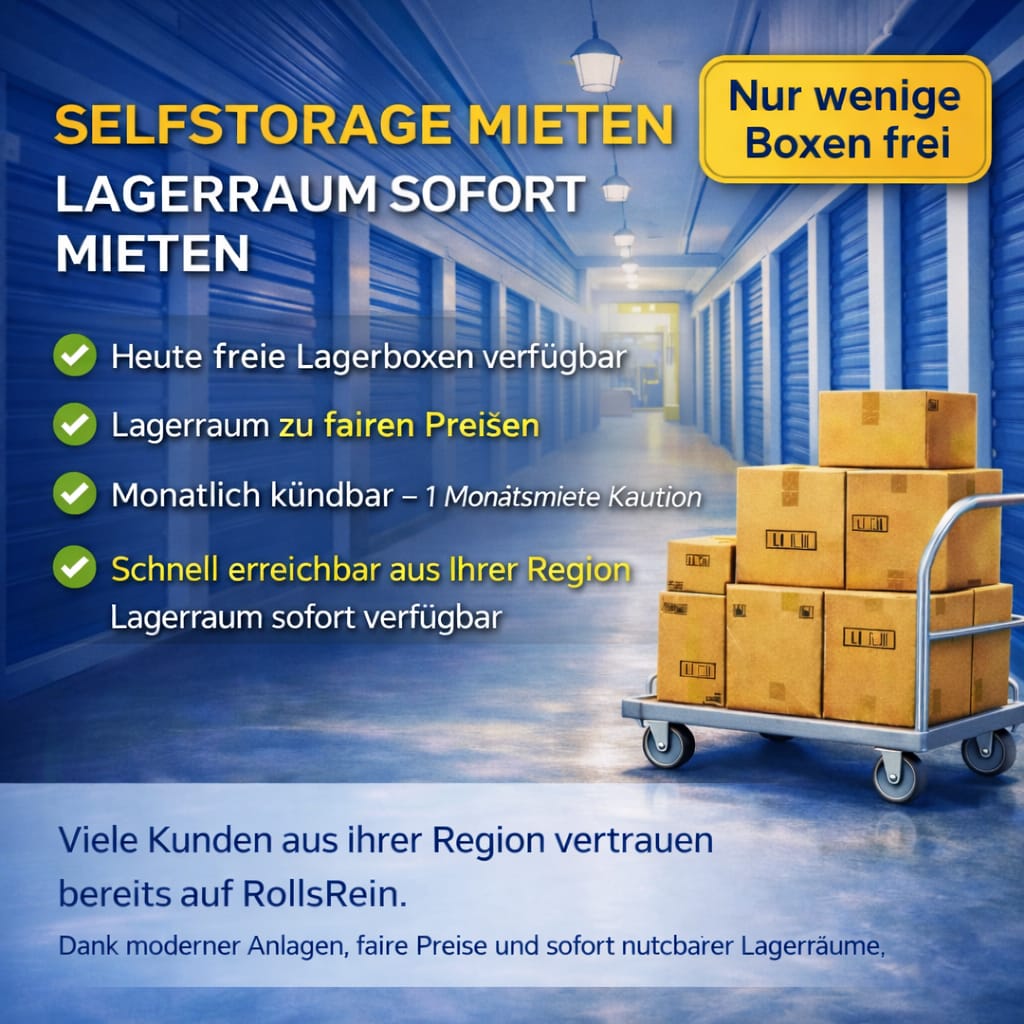 Ob kurzfristige Lagerung beim Umzug, Renovierung oder langfristiges Selfstorage für Ihr Unternehmen: Rollsrein bietet Ihnen individuelle Lagerlösungen in verschiedenen Größen – optimal erreichbar für Kunden aus Bad Homburg vor der Höhe und Umgebung.